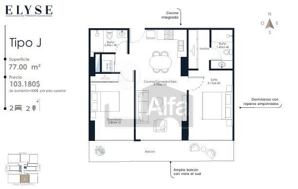 Departamento de 2 Dormitorios en Elyse 2027 – 77 m²