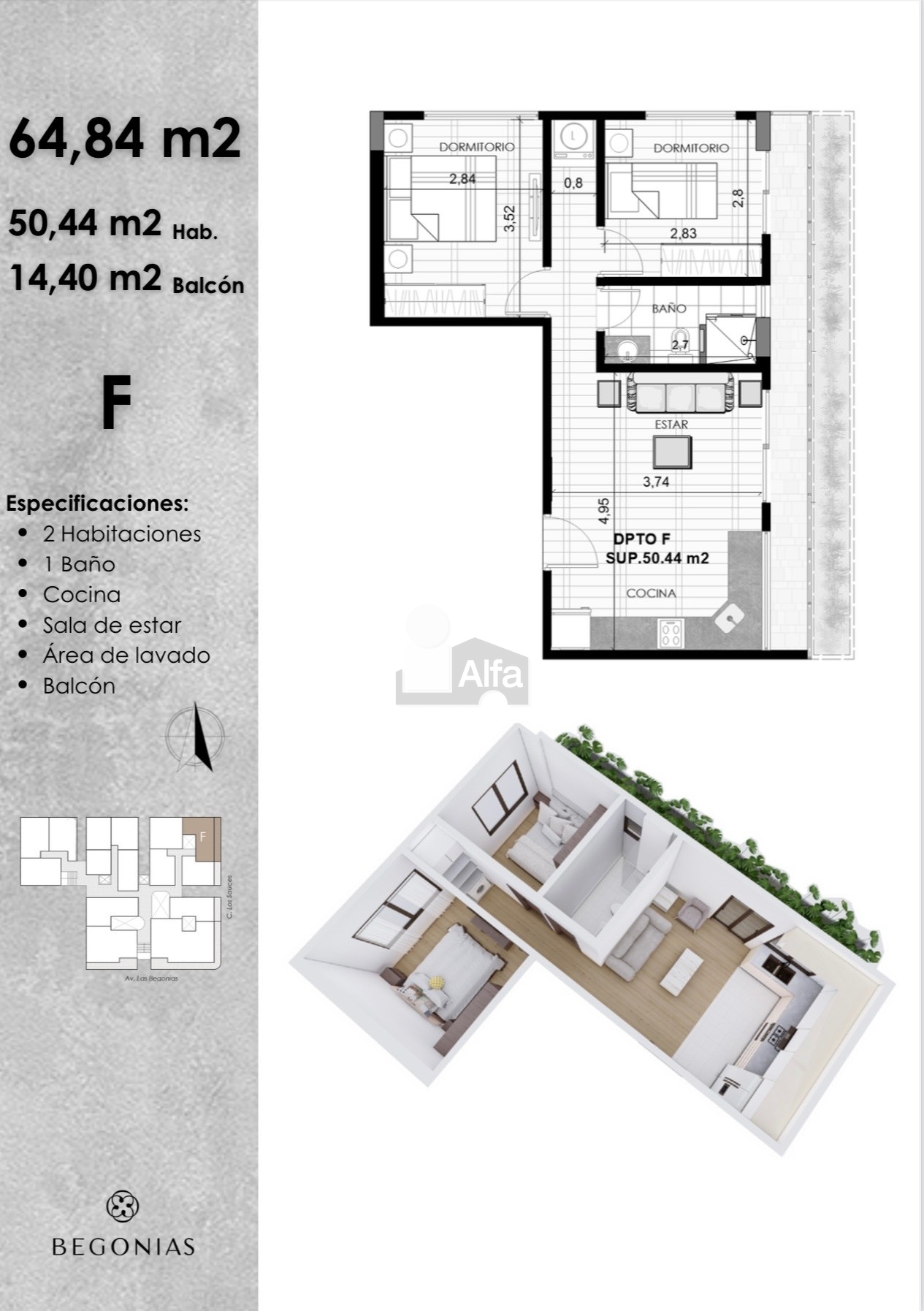 - Área total construida: 65 m2.